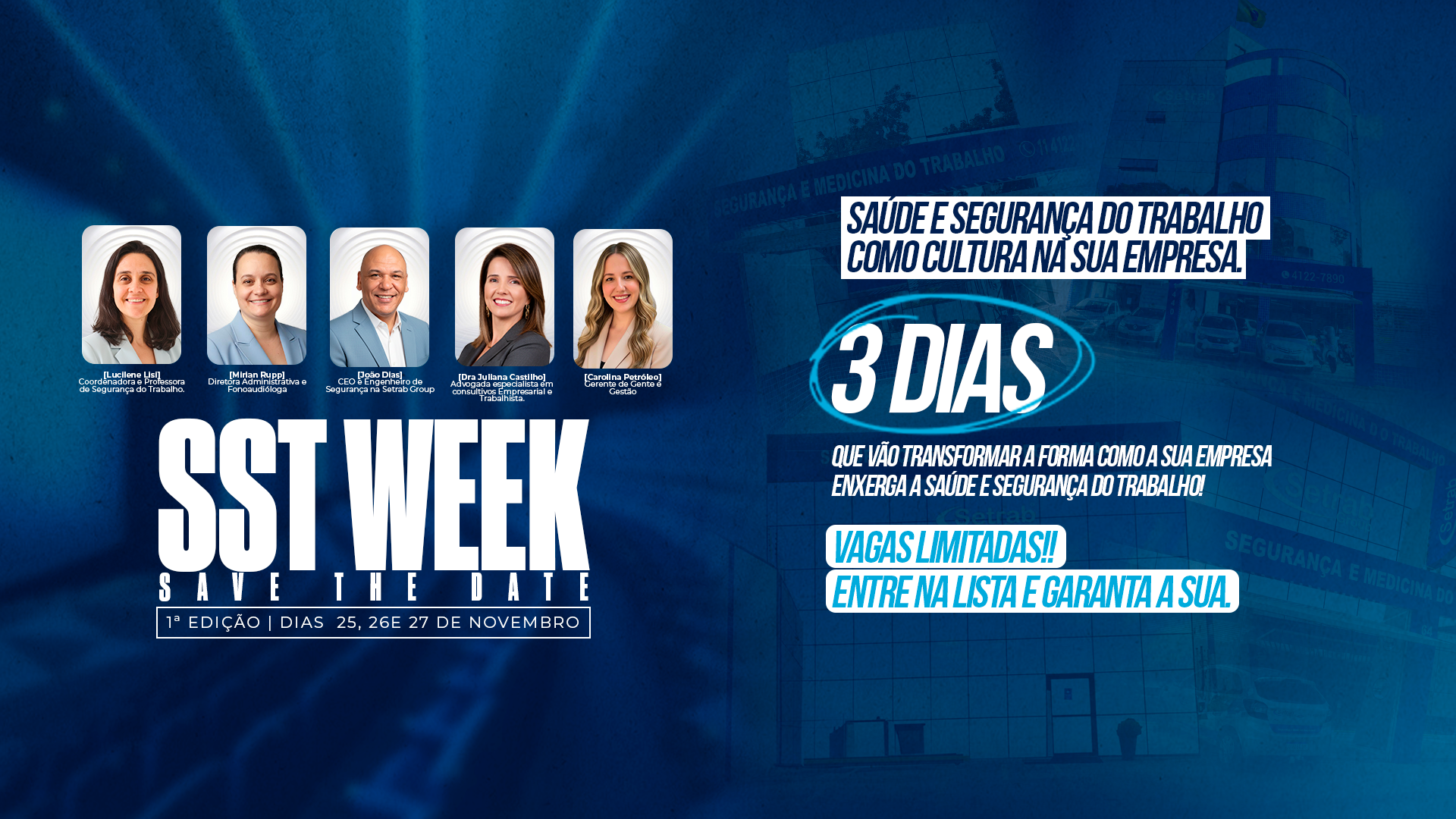 Clique no link e garanta sua vaga na SST Week do Setrab Group. Transforme a SST em cultura e a cultura em excelência.